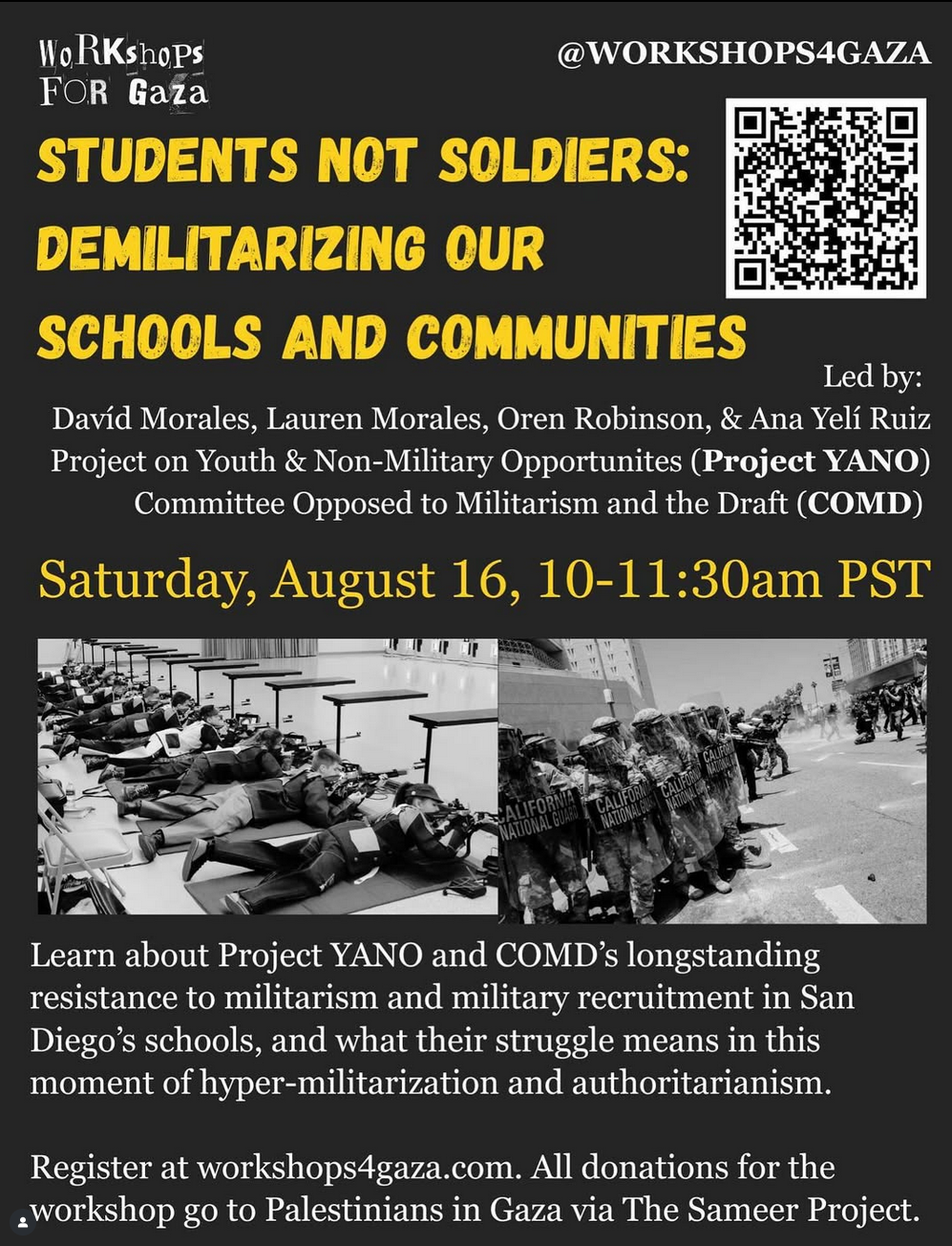 Countering military recruitment in this moment of hyper militarization and authoritarianism also includes making young people aware of how, as recruits, they could be used to carry out deportations, suppress dissent and terrorize communities, and enforce Trump’s threats to intervene militarily in places like Panama, Gaza, Mexico and cities across the United States.